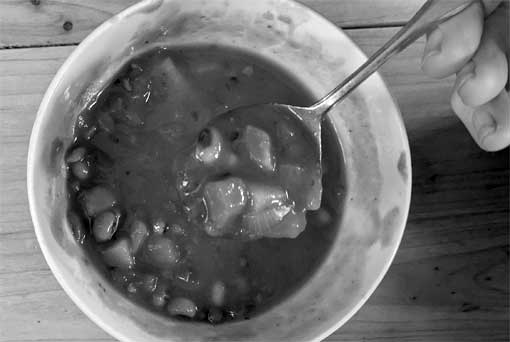 There’s definitely carrot in there. And potato. But the real clue – you can probably spot it in the picture – are what looks like very small black-eyes peas. Tiny beige beans with a dark spot on its belly.