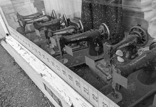 This is the photo I was trying to post last night. Nothing too interesting – a display of old sewing machines in the window of a shop in Bexhill. Note the strip at the bottom of the display, which emulates a giant tape measure.