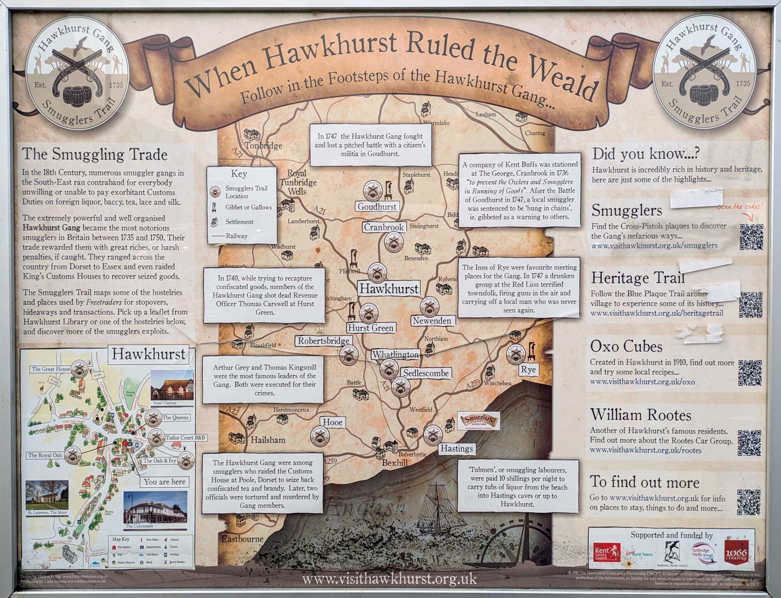 Hawkhurst (and this whole area) really was a hotbed of smuggling in the 18th C. Still is, in a different way. It’s because it’s the closest point to the continent, duh. Here’s a nice big infographic about it.