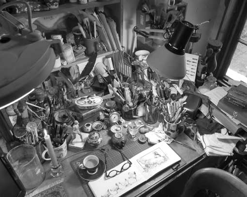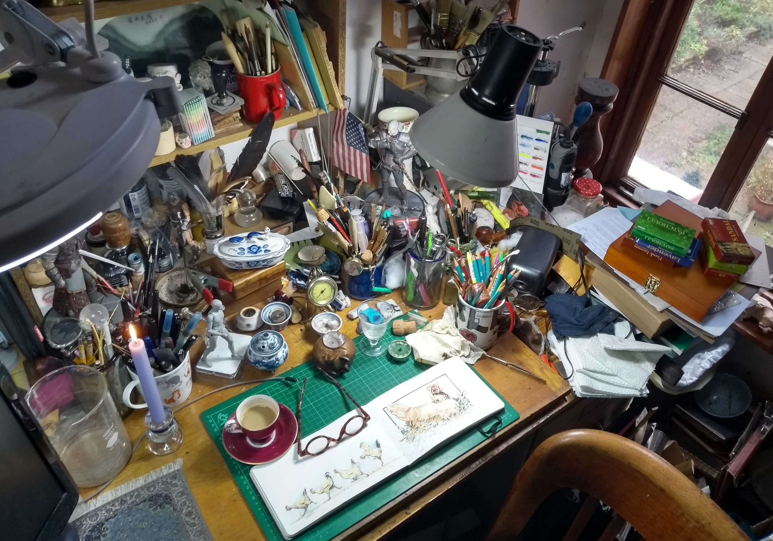 I need to straighten it up some time – not because it’s messy but because there are a lot of old ink bottles and jars of turpentine that have dried right up.